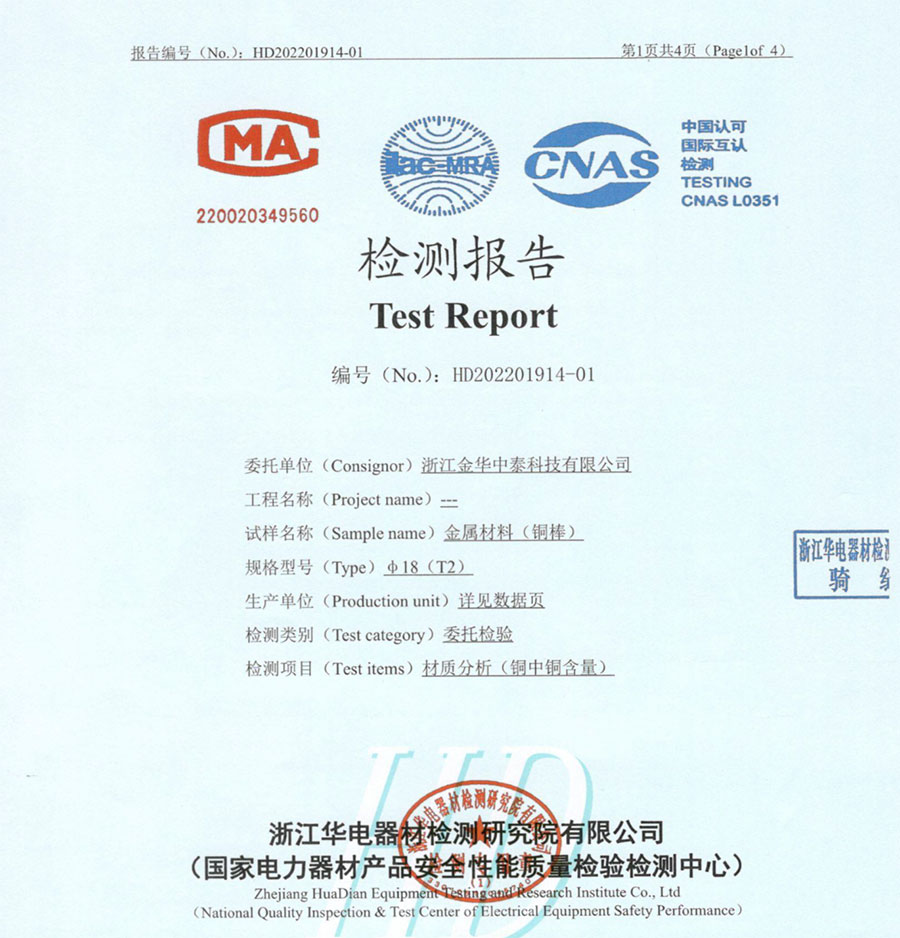 公司的銅棒頭產(chǎn)品通過相關(guān)檢測要求